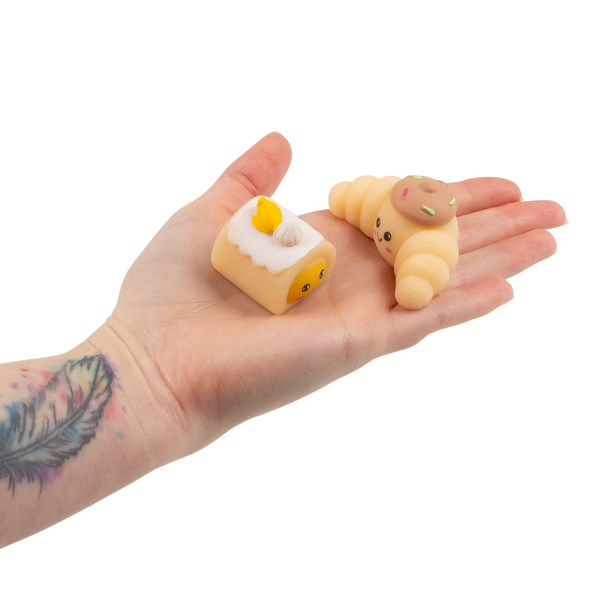 Comblez vos envies de squishy avec les Scrunchems Cake Squishy Buddies ! Ces adorables squishy buddies kawaii sur le thème des gâteaux complètent à merveille la gamme Scrunchems. Présentés dans une petite boîte colorée écologique (sans plastique !), ces 24 Scrunchems Cake Squishy Buddies proposent sept designs charmants. Craquez pour leur douceur moelleuse et collectionnez-les pour une expérience de jeu gourmande !