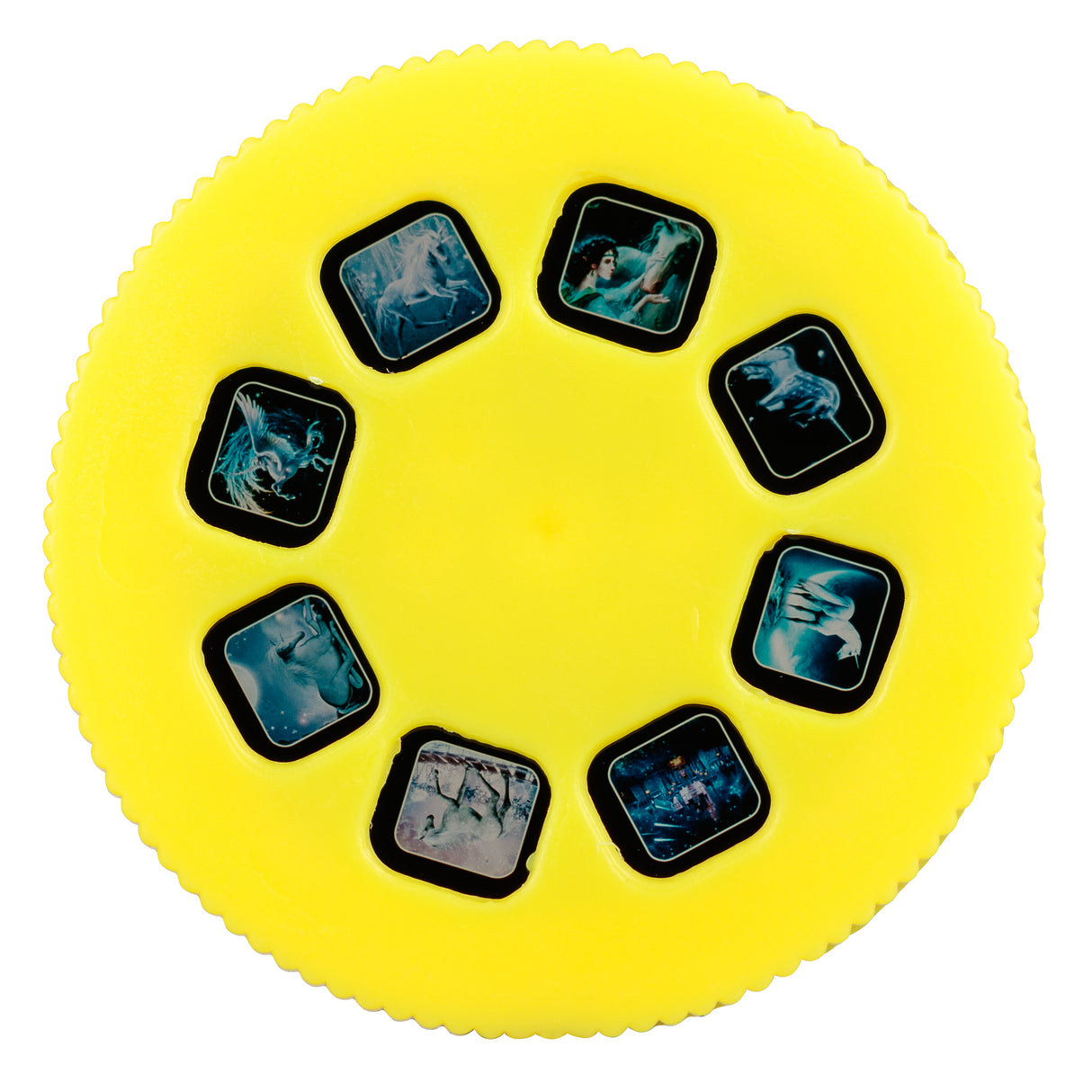 Lampe torche colorée projetant des images de licornes en couleur sur n'importe quelle surface. Glissez l'un des trois disques inclus dans la lampe, puis dirigez-le vers un mur pour voir une image fantastique projetée. Faites rouler le disque pour passer à une autre image. Chaque disque contient huit images en couleur, soit un total de 24 images fournies avec chaque lampe torche.