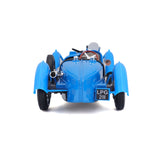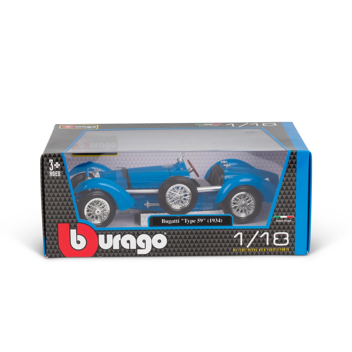 Highly detailed model of the Bugatti Type 59 race car, first built in 1934. The 1:18 scale body of this beautiful diecast miniature is covered with authentic features, just as they were found on the classic car. From the stylish head lamps to the detailed model of the Type 59’s engine under the hood, every part looks just like it did on the original. The electrostatic paint coating completes the look with a perfect finish.