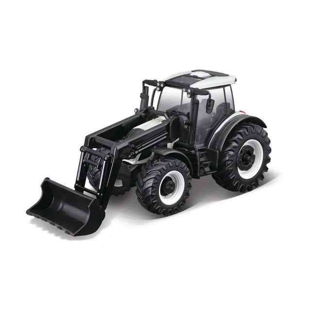 Hugely detailed model of a Valtra M2/Q farm tractor. The chassis and mud guard sit above four chunky wheels with authentic-looking deep tread tyres. At the top of the steps is the open view cabin with full interior details like any other Bburago model vehicle. Includes front loader accessory.
