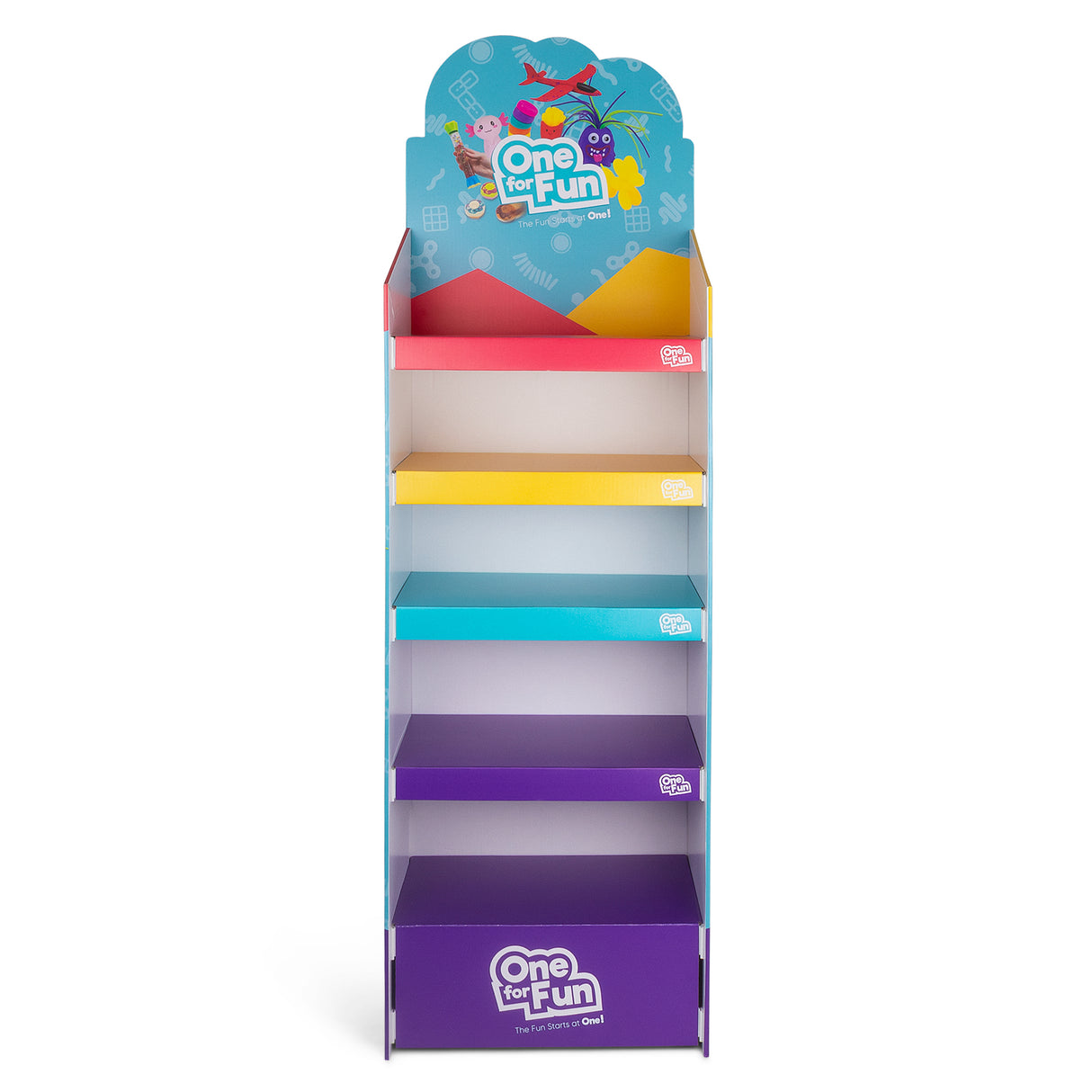 This stylish and eye-catching display unit offers you a great way to showcase One For Fun products in any retail setting. It’s easy to assemble and you can rest assured that your One For Fun products are securely in place and organize your products in an attractive and efficient way.