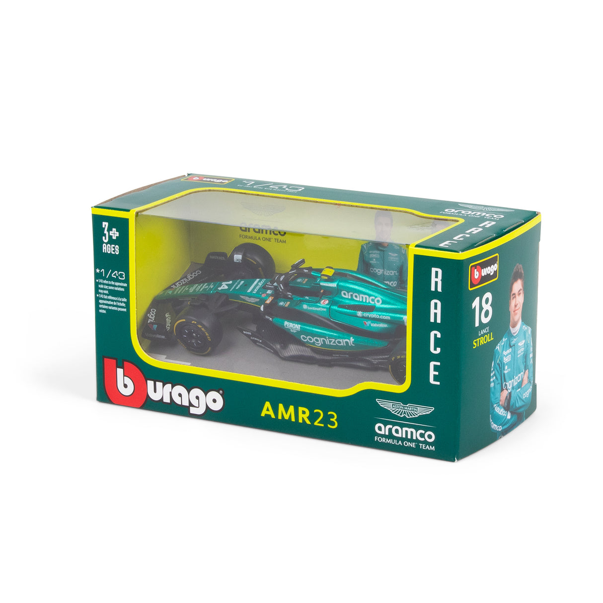 An intricately crafted replica of the Aston Martin Amr car driven by Stroll. This 1:43 scale diecast replica perfectly recreates the distinctive shape of the F1 car, capturing every aerodynamic curve and line as it can be seen on the real vehicle. The level of detail on the surface is incredible, with authentic sponsor and race decals perfectly recreated.